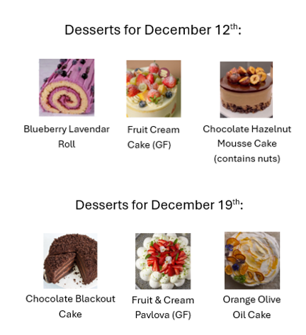 Enhance your Shabbas meal with a homemade delight! All cakes are parve and can be frozen.